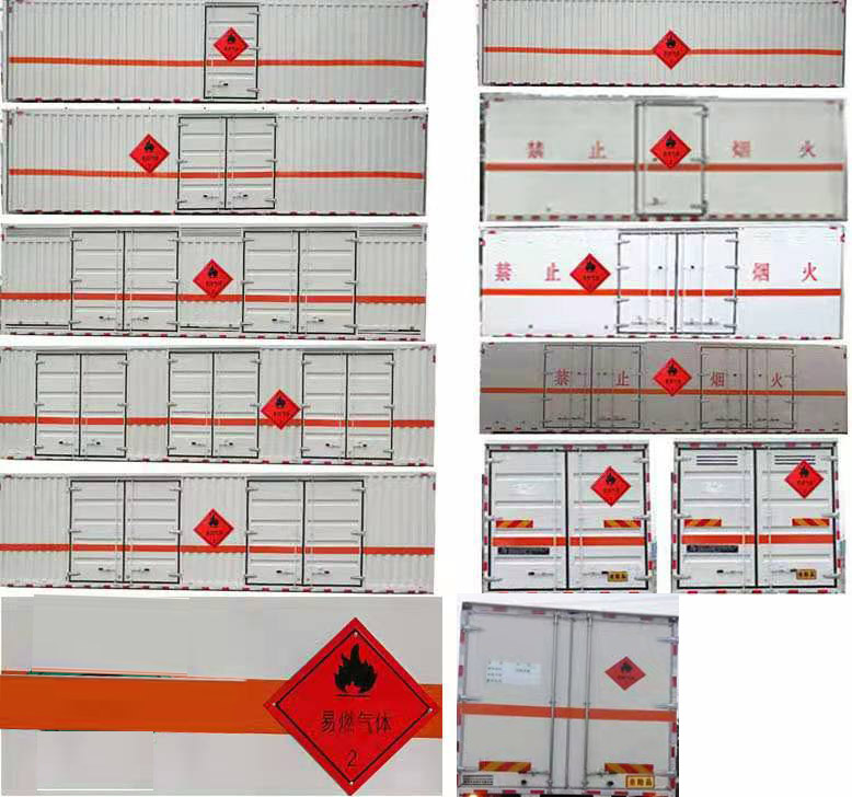 | 產品名稱: | 易燃氣體廂式運輸車 | 外型尺寸: | 10100,11000×2550×3580,3780(mm) |
