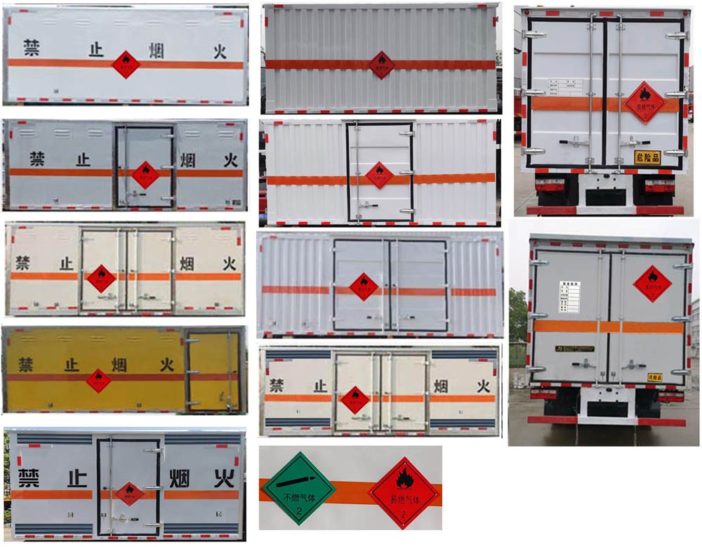 | 產(chǎn)品名稱: | 易燃氣體廂式運輸車 | 外型尺寸: | 5995×2100,2150×2970,3120(mm) |