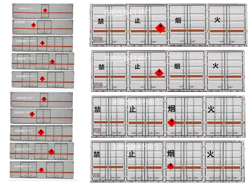 | 整車備注: | ABS型號(hào):CM4XL;ABS生產(chǎn)企業(yè):長春瑞立科密汽車電子有限公司;安裝有限速裝置;限速裝置限速(km/h):79;安裝有具有衛(wèi)星定位功能的行駛記錄儀;選裝描述:僅選用1900+4500+1350mm軸距底盤,選裝側(cè)開門,側(cè)門可為單開門或雙開門或三開門或四開門,選裝側(cè)門型式及位置,選裝雙門桿;發(fā)動(dòng)機(jī)/油耗值(L/100km)對(duì)應(yīng)關(guān)系為:CA6DK1-32E6/38.45,CA6DL6-36E6/38.39;所用材料材質(zhì)、連接方式以及后部防護(hù)裝置的主要尺寸參數(shù)(斷面尺寸和離地高度):側(cè)/后防護(hù)材料為Q235,側(cè)防護(hù)焊接連接,后防護(hù)采用焊接,截面尺寸120×50mm,下邊緣離地高460mm;尾板、上下坡道(或類似裝置)收起狀態(tài)的水平長度(mm):裝液壓尾板時(shí)收起狀態(tài)的水平長度為290mm,尾板質(zhì)量為550kg;車廂頂部封閉且不可開啟;專用功能及裝置:該車用于危險(xiǎn)品運(yùn)輸;運(yùn)輸獨(dú)立容器(瓶)包裝的貨物;危險(xiǎn)貨物類項(xiàng)號(hào):3;其他說明:僅選用排氣管前置,前盤制動(dòng),子午線輪胎底盤;后軸采用空氣懸架;轉(zhuǎn)向輪安裝輪胎爆胎應(yīng)急防護(hù)裝置;可選裝ETC車載裝置; | ||