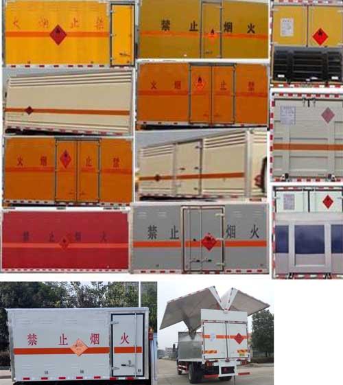 | 整車備注: | 隨底盤選裝前面罩,前保險杠,前組合燈具.選裝液壓尾板,車廂頂部封閉不可開啟.廂體選裝平面和瓦楞板結(jié)構(gòu),運輸獨立容器包裝的易燃氣體氣瓶.運送危險貨物的品名為液化石油氣,壓縮天然氣,壓縮氫氣,甲烷,乙炔,丁烷,丙烷,打火機或打火機加油器,壓縮煤氣,壓縮氧,溶解乙炔;運輸具有獨立容器包裝的非易燃無毒氣體:壓縮空氣 (二氧化碳、氧、氮、氦、氬、氖).運送危險品類項號:2.1、2.2.危險品標志牌選掛2.1類易燃氣體警示牌或掛2.2類非易燃無毒氣體警示牌.運送危險貨物類項號為:2.1,2.1,2.1,2.1,2.3,2.2,2.1. 廂體側(cè)面板選裝開百葉窗,選裝不帶側(cè)門,側(cè)門型式及位置;選裝不開側(cè)門時整車寬度為2400mm,選裝側(cè)開門時整車寬度為2480mm,選裝液壓后尾板,尾板收起狀態(tài)水平長度300mm,廂體顏色可變化,文字噴涂位置可變化,廂體選裝平面和瓦楞板結(jié)構(gòu),選裝車廂翼開啟結(jié)構(gòu)ABS系統(tǒng)生產(chǎn)廠家及型號 :襄陽東風隆誠機械有限責任公司,ABS/ASR-24V-4S/4M.,安裝限速裝置,限制最高車速不得超過80km/h,僅選用排氣管前置,前輪安裝盤式制動器及子午線輪胎的底盤,安裝具有衛(wèi)星定位功能的行駛記錄儀.側(cè)面及后下部防護裝置材料為Q235,連接方式:焊接加螺栓連接.后下部防護裝置斷面尺寸(mm):100×50,離地高度:475mm.該車為 EX/Ⅲ型車輛 | ||