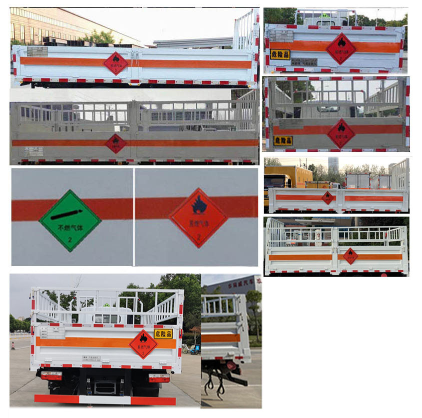 | 產(chǎn)品名稱: | 氣瓶運(yùn)輸車 | 外型尺寸: | 5995×2150,2100×2480(mm) |